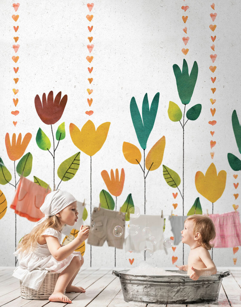 Papiers peints avec des nuances de couleurs claires, des motifs discrets et simples.