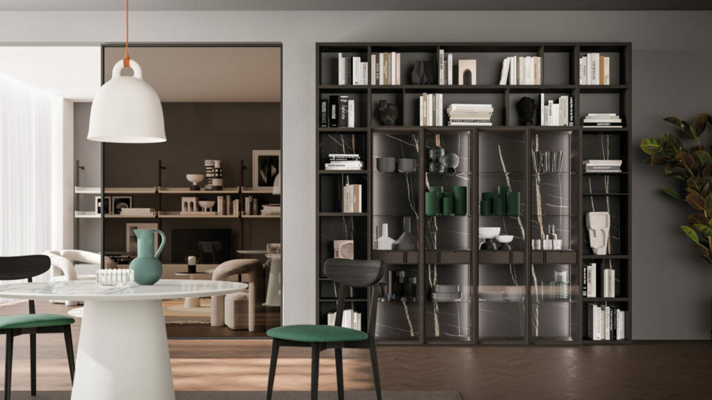 Au contraire, si vous préférez que votre vaisselle et vos livres soient rangés dans un endroit clos mais visibles de l’extérieur, optez pour les portes en verre.