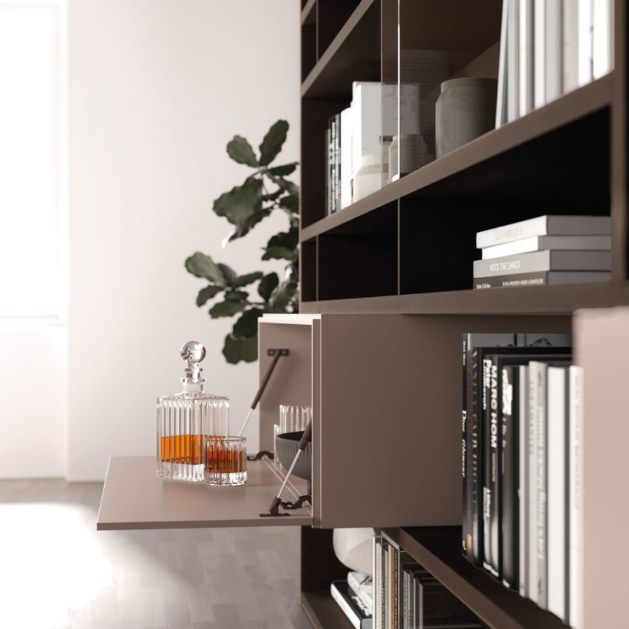 Bibliothèque qui dispose d'éléments ouverts et fermés.