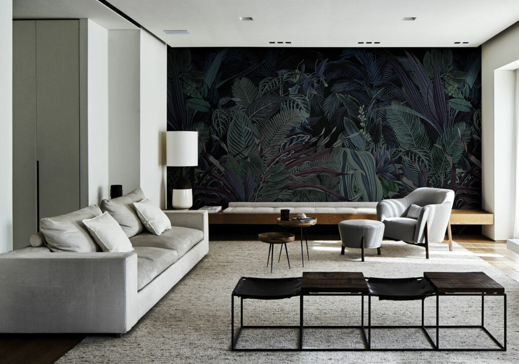Pour vos longs pans de murs, le papier peint panoramique est une bonne solution, il habille le mur et apporte un effet de profondeur à votre séjour.