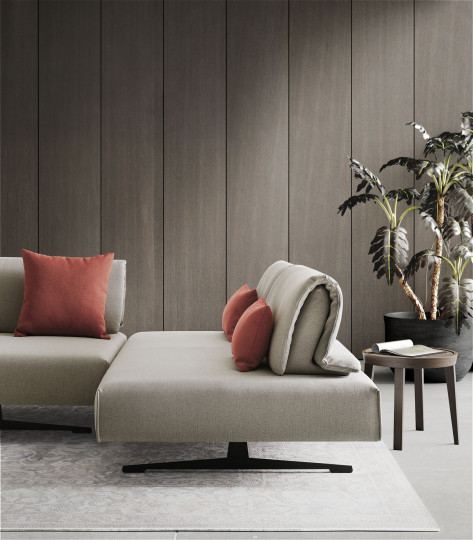 Ne choisissez plus dans quel sens mettre votre canapé. Avec ces dossiers amovibles, vous êtes libre de changer la disposition. D’un côté pour regarder la télévision, de l’autre pour profiter du minibar intégré dans votre bibliothèque.